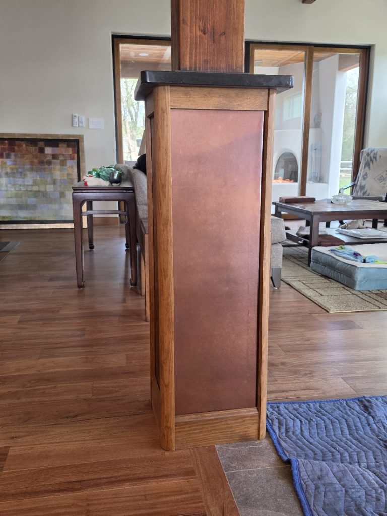 We’ve been in the house about 2 months now. Yesterday I finally finished the base of the post in the living area. The post went from being naked –