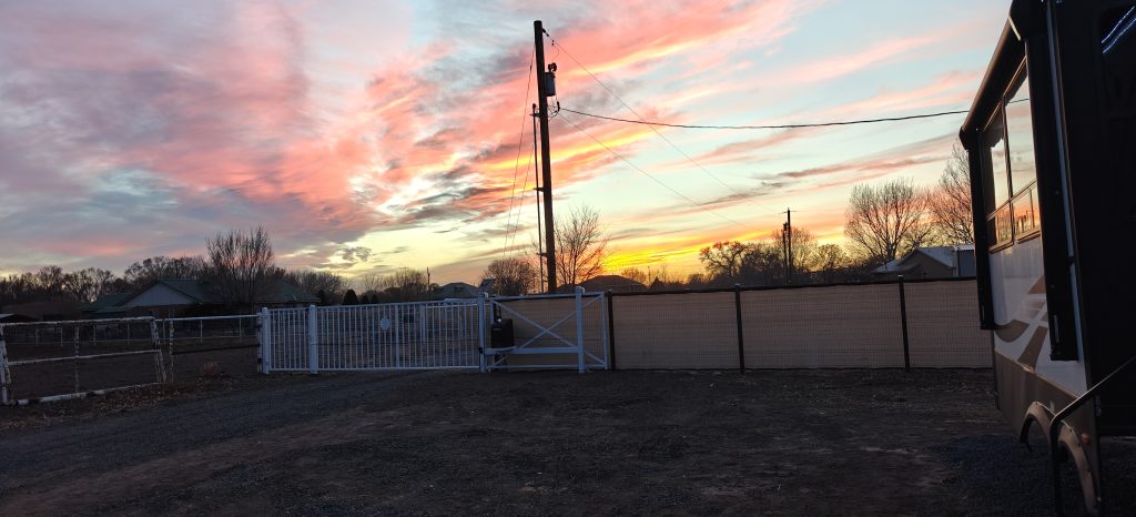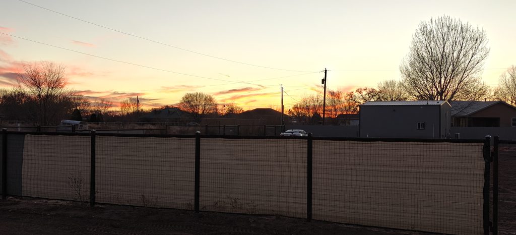Today is about work. Need to get travel arrangements made for Orlando. Still not crazy about going, but it’ll be good for me to go and get out of NM for a few days. Need to get some more dirt spread, so that will be tractor work. And with a front coming through, there will be wind tonight. Things are starting to fall into a routine which helps me. I used to thrive on change and being busy, but now time goes so fast that it feels like I never get anything done, so that’s frustrating. I also need to check with our contractor and see if we got CID permission and when the groundwork starts.
