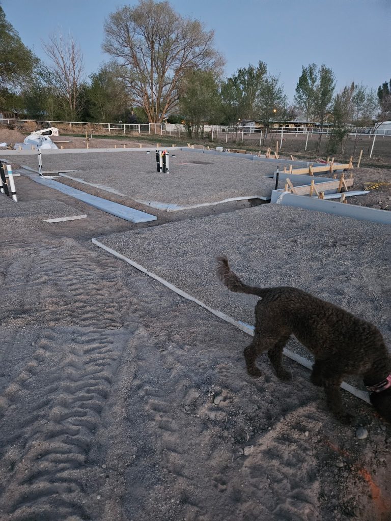 We walked the property today and tried to pick up all the trash that blew around from the construction site. I’ll pick it up this week and move it back to the site. There’s a lot of work the foundation guys need to do to clean up the trenches and get all the rebar installed this week. They also need to reinstall the insulation as it blew away from the foundation. I’m not sure they’ll be ready for CID this week. Tomorrow my handyman shows up and he’s going to install a gate on the northeast corner of the property between Dennis and I. I’ll have him install it on the property line so Dennis and I can use it.